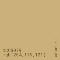 Цвет #CCB079 в цветовой модели RGB обозначается тремя октетами (204, 176, 121) в десятичном формате и #CCB079 в шестнадцатиричном (hex) формате, которые являются интенсивностью красного 204 (hex CC), интенсивность зелёного 176 (hex B0) и интенсивность синего 121 (hex 79).
