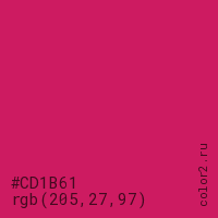 Цвет #CD1B61 в цветовой модели RGB обозначается тремя октетами (205, 27, 97) в десятичном формате и #CD1B61 в шестнадцатиричном (hex) формате, которые являются интенсивностью красного 205 (hex CD), интенсивность зелёного 27 (hex 1B) и интенсивность синего 97 (hex 61).