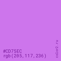 Цвет #CD75EC в цветовой модели RGB обозначается тремя октетами (205, 117, 236) в десятичном формате и #CD75EC в шестнадцатиричном (hex) формате, которые являются интенсивностью красного 205 (hex CD), интенсивность зелёного 117 (hex 75) и интенсивность синего 236 (hex EC).