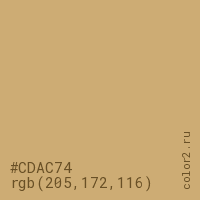 Цвет #CDAC74 в цветовой модели RGB обозначается тремя октетами (205, 172, 116) в десятичном формате и #CDAC74 в шестнадцатиричном (hex) формате, которые являются интенсивностью красного 205 (hex CD), интенсивность зелёного 172 (hex AC) и интенсивность синего 116 (hex 74).