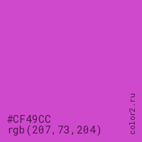 Цвет #CF49CC в цветовой модели RGB обозначается тремя октетами (207, 73, 204) в десятичном формате и #CF49CC в шестнадцатиричном (hex) формате, которые являются интенсивностью красного 207 (hex CF), интенсивность зелёного 73 (hex 49) и интенсивность синего 204 (hex CC).