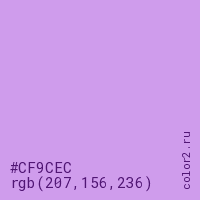 Цвет #CF9CEC в цветовой модели RGB обозначается тремя октетами (207, 156, 236) в десятичном формате и #CF9CEC в шестнадцатиричном (hex) формате, которые являются интенсивностью красного 207 (hex CF), интенсивность зелёного 156 (hex 9C) и интенсивность синего 236 (hex EC).