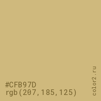 Цвет #CFB97D в цветовой модели RGB обозначается тремя октетами (207, 185, 125) в десятичном формате и #CFB97D в шестнадцатиричном (hex) формате, которые являются интенсивностью красного 207 (hex CF), интенсивность зелёного 185 (hex B9) и интенсивность синего 125 (hex 7D).