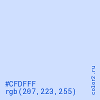 Цвет #CFDFFF в цветовой модели RGB обозначается тремя октетами (207, 223, 255) в десятичном формате и #CFDFFF в шестнадцатиричном (hex) формате, которые являются интенсивностью красного 207 (hex CF), интенсивность зелёного 223 (hex DF) и интенсивность синего 255 (hex FF).