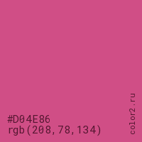 Цвет #D04E86 в цветовой модели RGB обозначается тремя октетами (208, 78, 134) в десятичном формате и #D04E86 в шестнадцатиричном (hex) формате, которые являются интенсивностью красного 208 (hex D0), интенсивность зелёного 78 (hex 4E) и интенсивность синего 134 (hex 86).