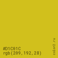 Цвет #D1C01C в цветовой модели RGB обозначается тремя октетами (209, 192, 28) в десятичном формате и #D1C01C в шестнадцатиричном (hex) формате, которые являются интенсивностью красного 209 (hex D1), интенсивность зелёного 192 (hex C0) и интенсивность синего 28 (hex 1C).