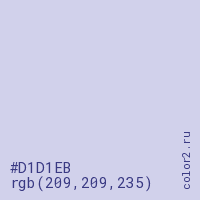 Цвет #D1D1EB в цветовой модели RGB обозначается тремя октетами (209, 209, 235) в десятичном формате и #D1D1EB в шестнадцатиричном (hex) формате, которые являются интенсивностью красного 209 (hex D1), интенсивность зелёного 209 (hex D1) и интенсивность синего 235 (hex EB).