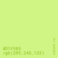 Цвет #D1F585 в цветовой модели RGB обозначается тремя октетами (209, 245, 133) в десятичном формате и #D1F585 в шестнадцатиричном (hex) формате, которые являются интенсивностью красного 209 (hex D1), интенсивность зелёного 245 (hex F5) и интенсивность синего 133 (hex 85).