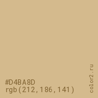 Цвет #D4BA8D в цветовой модели RGB обозначается тремя октетами (212, 186, 141) в десятичном формате и #D4BA8D в шестнадцатиричном (hex) формате, которые являются интенсивностью красного 212 (hex D4), интенсивность зелёного 186 (hex BA) и интенсивность синего 141 (hex 8D).