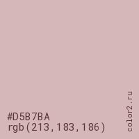 Цвет #D5B7BA в цветовой модели RGB обозначается тремя октетами (213, 183, 186) в десятичном формате и #D5B7BA в шестнадцатиричном (hex) формате, которые являются интенсивностью красного 213 (hex D5), интенсивность зелёного 183 (hex B7) и интенсивность синего 186 (hex BA).