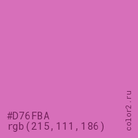 Цвет #D76FBA в цветовой модели RGB обозначается тремя октетами (215, 111, 186) в десятичном формате и #D76FBA в шестнадцатиричном (hex) формате, которые являются интенсивностью красного 215 (hex D7), интенсивность зелёного 111 (hex 6F) и интенсивность синего 186 (hex BA).