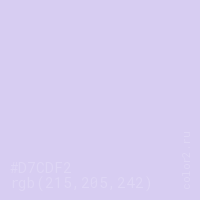 Цвет #D7CDF2 в цветовой модели RGB обозначается тремя октетами (215, 205, 242) в десятичном формате и #D7CDF2 в шестнадцатиричном (hex) формате, которые являются интенсивностью красного 215 (hex D7), интенсивность зелёного 205 (hex CD) и интенсивность синего 242 (hex F2).