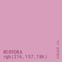 Цвет #D89DBA в цветовой модели RGB обозначается тремя октетами (216, 157, 186) в десятичном формате и #D89DBA в шестнадцатиричном (hex) формате, которые являются интенсивностью красного 216 (hex D8), интенсивность зелёного 157 (hex 9D) и интенсивность синего 186 (hex BA).