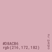 Цвет #D8ACB6 в цветовой модели RGB обозначается тремя октетами (216, 172, 182) в десятичном формате и #D8ACB6 в шестнадцатиричном (hex) формате, которые являются интенсивностью красного 216 (hex D8), интенсивность зелёного 172 (hex AC) и интенсивность синего 182 (hex B6).