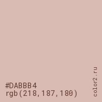 Цвет #DABBB4 в цветовой модели RGB обозначается тремя октетами (218, 187, 180) в десятичном формате и #DABBB4 в шестнадцатиричном (hex) формате, которые являются интенсивностью красного 218 (hex DA), интенсивность зелёного 187 (hex BB) и интенсивность синего 180 (hex B4).