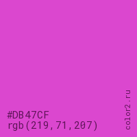 Цвет #DB47CF в цветовой модели RGB обозначается тремя октетами (219, 71, 207) в десятичном формате и #DB47CF в шестнадцатиричном (hex) формате, которые являются интенсивностью красного 219 (hex DB), интенсивность зелёного 71 (hex 47) и интенсивность синего 207 (hex CF).