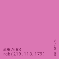 Цвет #DB76B3 в цветовой модели RGB обозначается тремя октетами (219, 118, 179) в десятичном формате и #DB76B3 в шестнадцатиричном (hex) формате, которые являются интенсивностью красного 219 (hex DB), интенсивность зелёного 118 (hex 76) и интенсивность синего 179 (hex B3).