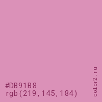 Цвет #DB91B8 в цветовой модели RGB обозначается тремя октетами (219, 145, 184) в десятичном формате и #DB91B8 в шестнадцатиричном (hex) формате, которые являются интенсивностью красного 219 (hex DB), интенсивность зелёного 145 (hex 91) и интенсивность синего 184 (hex B8).