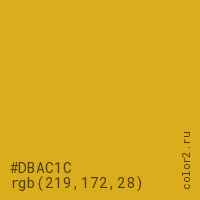 Цвет #DBAC1C в цветовой модели RGB обозначается тремя октетами (219, 172, 28) в десятичном формате и #DBAC1C в шестнадцатиричном (hex) формате, которые являются интенсивностью красного 219 (hex DB), интенсивность зелёного 172 (hex AC) и интенсивность синего 28 (hex 1C).