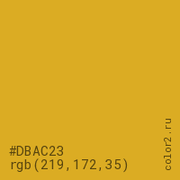 Цвет #DBAC23 в цветовой модели RGB обозначается тремя октетами (219, 172, 35) в десятичном формате и #DBAC23 в шестнадцатиричном (hex) формате, которые являются интенсивностью красного 219 (hex DB), интенсивность зелёного 172 (hex AC) и интенсивность синего 35 (hex 23).