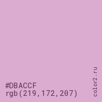 Цвет #DBACCF в цветовой модели RGB обозначается тремя октетами (219, 172, 207) в десятичном формате и #DBACCF в шестнадцатиричном (hex) формате, которые являются интенсивностью красного 219 (hex DB), интенсивность зелёного 172 (hex AC) и интенсивность синего 207 (hex CF).
