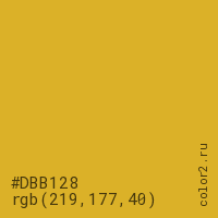 Цвет #DBB128 в цветовой модели RGB обозначается тремя октетами (219, 177, 40) в десятичном формате и #DBB128 в шестнадцатиричном (hex) формате, которые являются интенсивностью красного 219 (hex DB), интенсивность зелёного 177 (hex B1) и интенсивность синего 40 (hex 28).