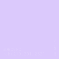 Цвет #DBC9FC в цветовой модели RGB обозначается тремя октетами (219, 201, 252) в десятичном формате и #DBC9FC в шестнадцатиричном (hex) формате, которые являются интенсивностью красного 219 (hex DB), интенсивность зелёного 201 (hex C9) и интенсивность синего 252 (hex FC).