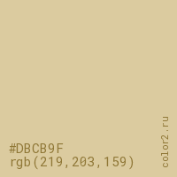 Цвет #DBCB9F в цветовой модели RGB обозначается тремя октетами (219, 203, 159) в десятичном формате и #DBCB9F в шестнадцатиричном (hex) формате, которые являются интенсивностью красного 219 (hex DB), интенсивность зелёного 203 (hex CB) и интенсивность синего 159 (hex 9F).