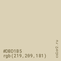 Цвет #DBD1B5 в цветовой модели RGB обозначается тремя октетами (219, 209, 181) в десятичном формате и #DBD1B5 в шестнадцатиричном (hex) формате, которые являются интенсивностью красного 219 (hex DB), интенсивность зелёного 209 (hex D1) и интенсивность синего 181 (hex B5).