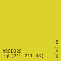 Цвет #DBD32B в цветовой модели RGB обозначается тремя октетами (219, 211, 43) в десятичном формате и #DBD32B в шестнадцатиричном (hex) формате, которые являются интенсивностью красного 219 (hex DB), интенсивность зелёного 211 (hex D3) и интенсивность синего 43 (hex 2B).