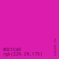 Цвет #DC1CAD в цветовой модели RGB обозначается тремя октетами (220, 28, 173) в десятичном формате и #DC1CAD в шестнадцатиричном (hex) формате, которые являются интенсивностью красного 220 (hex DC), интенсивность зелёного 28 (hex 1C) и интенсивность синего 173 (hex AD).