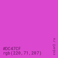 Цвет #DC47CF в цветовой модели RGB обозначается тремя октетами (220, 71, 207) в десятичном формате и #DC47CF в шестнадцатиричном (hex) формате, которые являются интенсивностью красного 220 (hex DC), интенсивность зелёного 71 (hex 47) и интенсивность синего 207 (hex CF).