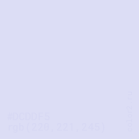 Цвет #DCDDF5 в цветовой модели RGB обозначается тремя октетами (220, 221, 245) в десятичном формате и #DCDDF5 в шестнадцатиричном (hex) формате, которые являются интенсивностью красного 220 (hex DC), интенсивность зелёного 221 (hex DD) и интенсивность синего 245 (hex F5).