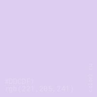 Цвет RGB(221, 205, 241) в процентом отношении количества цвета состоит из 86.7% красного (red), 80.4% зелёного (green) и 94.5% синего (blue).