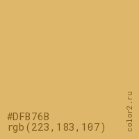 Цвет #DFB76B в цветовой модели RGB обозначается тремя октетами (223, 183, 107) в десятичном формате и #DFB76B в шестнадцатиричном (hex) формате, которые являются интенсивностью красного 223 (hex DF), интенсивность зелёного 183 (hex B7) и интенсивность синего 107 (hex 6B).