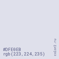 Цвет #DFE0EB в цветовой модели RGB обозначается тремя октетами (223, 224, 235) в десятичном формате и #DFE0EB в шестнадцатиричном (hex) формате, которые являются интенсивностью красного 223 (hex DF), интенсивность зелёного 224 (hex E0) и интенсивность синего 235 (hex EB).