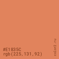 Цвет #E1835C в цветовой модели RGB обозначается тремя октетами (225, 131, 92) в десятичном формате и #E1835C в шестнадцатиричном (hex) формате, которые являются интенсивностью красного 225 (hex E1), интенсивность зелёного 131 (hex 83) и интенсивность синего 92 (hex 5C).
