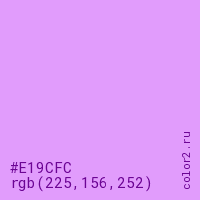 Цвет RGB(225, 156, 252) в процентом отношении количества цвета состоит из 88.2% красного (red), 61.2% зелёного (green) и 98.8% синего (blue).