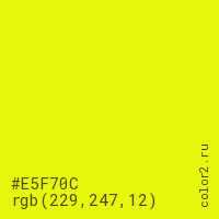 Цвет RGB(229, 247, 12) в процентом отношении количества цвета состоит из 89.8% красного (red), 96.9% зелёного (green) и 4.7% синего (blue).