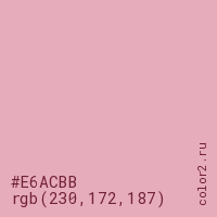 Цвет #E6ACBB в цветовой модели RGB обозначается тремя октетами (230, 172, 187) в десятичном формате и #E6ACBB в шестнадцатиричном (hex) формате, которые являются интенсивностью красного 230 (hex E6), интенсивность зелёного 172 (hex AC) и интенсивность синего 187 (hex BB).