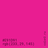 Цвет #E91D91 в цветовой модели RGB обозначается тремя октетами (233, 29, 145) в десятичном формате и #E91D91 в шестнадцатиричном (hex) формате, которые являются интенсивностью красного 233 (hex E9), интенсивность зелёного 29 (hex 1D) и интенсивность синего 145 (hex 91).