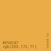 Цвет #E9AC47 в цветовой модели RGB обозначается тремя октетами (233, 172, 71) в десятичном формате и #E9AC47 в шестнадцатиричном (hex) формате, которые являются интенсивностью красного 233 (hex E9), интенсивность зелёного 172 (hex AC) и интенсивность синего 71 (hex 47).