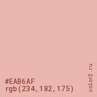Цвет #EAB6AF в цветовой модели RGB обозначается тремя октетами (234, 182, 175) в десятичном формате и #EAB6AF в шестнадцатиричном (hex) формате, которые являются интенсивностью красного 234 (hex EA), интенсивность зелёного 182 (hex B6) и интенсивность синего 175 (hex AF).