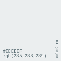 Цвет #EBEEEF в цветовой модели RGB обозначается тремя октетами (235, 238, 239) в десятичном формате и #EBEEEF в шестнадцатиричном (hex) формате, которые являются интенсивностью красного 235 (hex EB), интенсивность зелёного 238 (hex EE) и интенсивность синего 239 (hex EF).