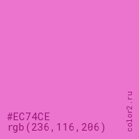 Цвет #EC74CE в цветовой модели RGB обозначается тремя октетами (236, 116, 206) в десятичном формате и #EC74CE в шестнадцатиричном (hex) формате, которые являются интенсивностью красного 236 (hex EC), интенсивность зелёного 116 (hex 74) и интенсивность синего 206 (hex CE).