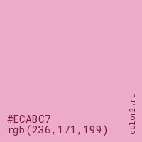 Цвет #ECABC7 в цветовой модели RGB обозначается тремя октетами (236, 171, 199) в десятичном формате и #ECABC7 в шестнадцатиричном (hex) формате, которые являются интенсивностью красного 236 (hex EC), интенсивность зелёного 171 (hex AB) и интенсивность синего 199 (hex C7).