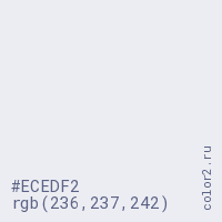 Цвет #ECEDF2 в цветовой модели RGB обозначается тремя октетами (236, 237, 242) в десятичном формате и #ECEDF2 в шестнадцатиричном (hex) формате, которые являются интенсивностью красного 236 (hex EC), интенсивность зелёного 237 (hex ED) и интенсивность синего 242 (hex F2).