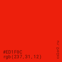 Цвет RGB(237, 31, 12) в процентом отношении количества цвета состоит из 92.9% красного (red), 12.2% зелёного (green) и 4.7% синего (blue).