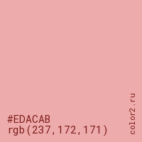 Цвет #EDACAB в цветовой модели RGB обозначается тремя октетами (237, 172, 171) в десятичном формате и #EDACAB в шестнадцатиричном (hex) формате, которые являются интенсивностью красного 237 (hex ED), интенсивность зелёного 172 (hex AC) и интенсивность синего 171 (hex AB).