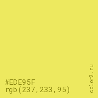 В представлении HSL цвет #EDE95F принимает значения тона (hue) 58, насыщенности (saturation) 80%, светлости (lightness) 65%.